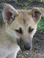 Today I followed my other master almost to town. She was leaving in the van and I wanted to see where she was going. She turned around and came back home (maybe to play with me??) but when she got out of the van she looked really angry. I wouldn't come near her because I could tell she was going to put me back in the barn. Finally the other master grabbed my collar and walked with me to my pen. I wonder how long I'll have to stay in here....